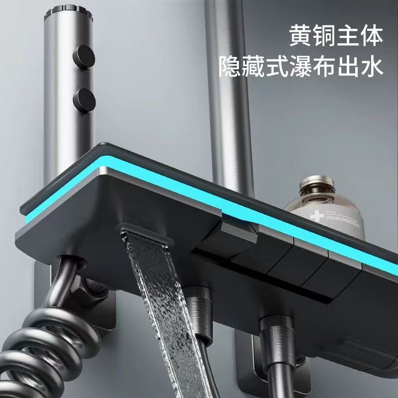 而它的宽阔置物台,则彻底解放了你的沐浴空间。沐浴露、精油、香氛……洗浴物品井然有序,从容收纳于转身之间。曲面玻璃工艺面板,搭载超净无痕技术,水过无迹、一擦即亮,美观又好打理。