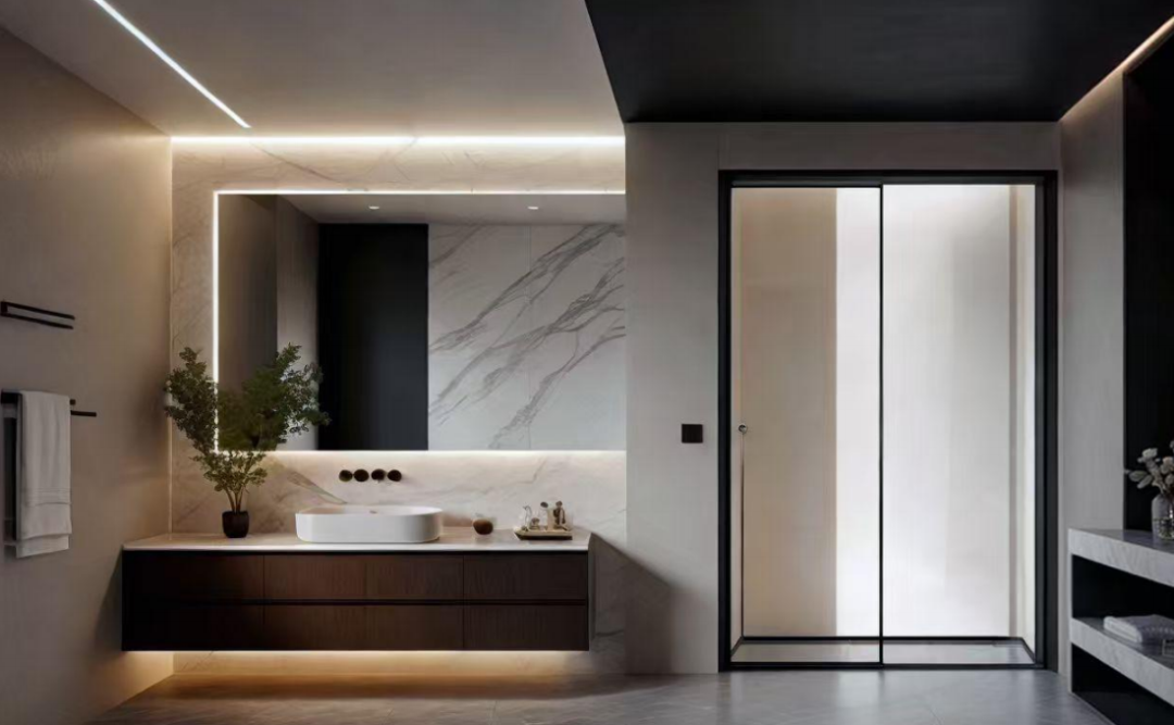 以微缝拼接工艺解构传统淋浴房的笨重印象。当活动门侧框收窄至12mm却内置加强龙骨。