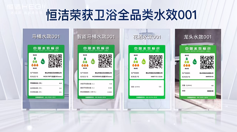值得一提的是,恒洁已包揽智能马桶、普通马桶、花酒、龙头等全品类“水效标识备案001号”,以领先的节水实力和完善的绿色产品矩阵,呼应国家标准的实施方向。