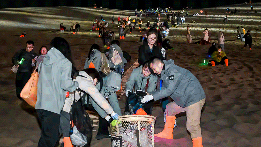 此外,在音乐季散场结束后,九牧还发起“带走垃圾 留下爱心”的公益活动,组织志愿者沿途捡拾垃圾、清扫现场,并通过公益标语和直播的形式,呼吁大家积极参与活动,让每个人化身沙漠绿洲守护者。