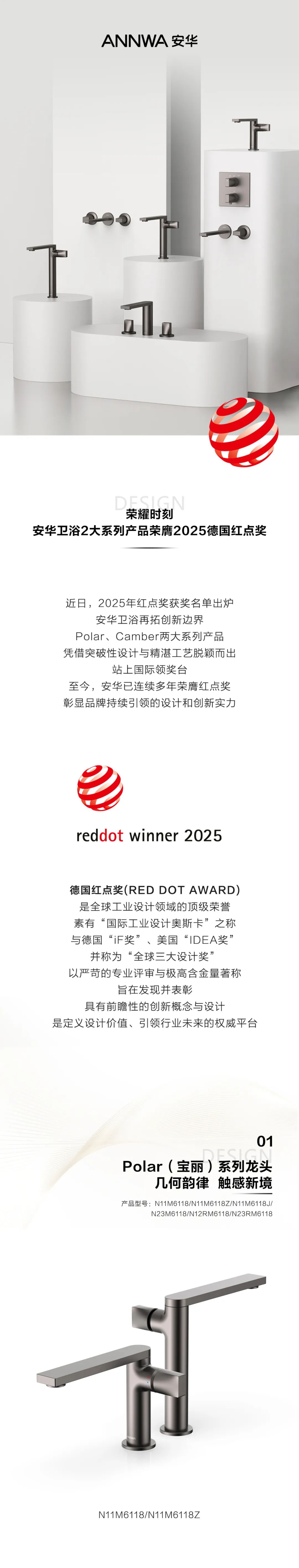 荣耀时刻!安华卫浴2大系列产品荣膺2025德国红点奖
