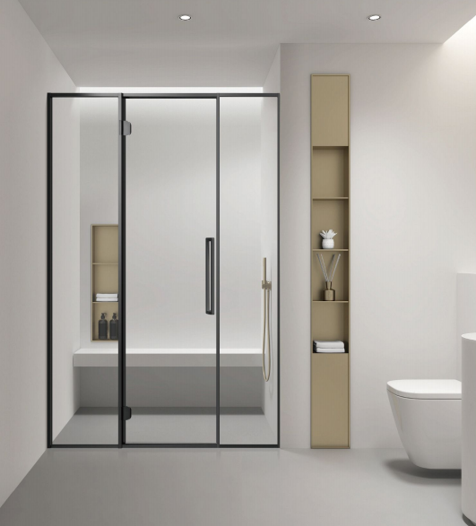 在定制维度上,法西尼亚实现了 “全维度覆盖”:外观上,用户可根据家居风格选择磨砂玻璃、长虹玻璃、艺术印花玻璃等材质,搭配哑光黑、玫瑰金、枪灰色等五金配色,避免 “千卫一面”;尺寸上,从宽度、高度到深度,均能根据卫浴空间实际尺寸精准调整,哪怕是仅 3㎡的小户型卫生间,也能通过定制实现 “干湿分离”;开门方式上,除常见的平开门、移门外,还可定制折叠门、内外开双向门,适配不同空间动线需求。