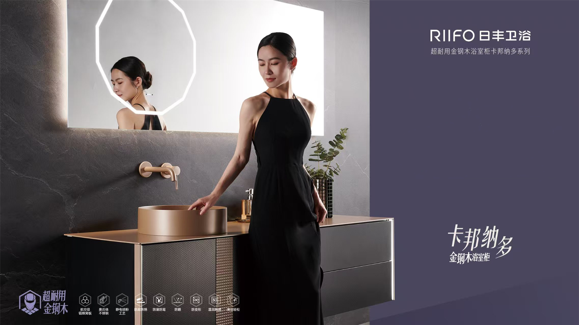 以业内关注的日丰卫浴金钢木浴室柜为例,其本质是一场“材料的结构性革命”:用不锈钢作为“骨骼”,解决承重与防锈的根基问题;用铝蜂窝芯作为“填充”,实现力学的优化与轻量化;表面则通过静电喷粉等技术披上“外衣”,兼顾美感与耐磨性。
