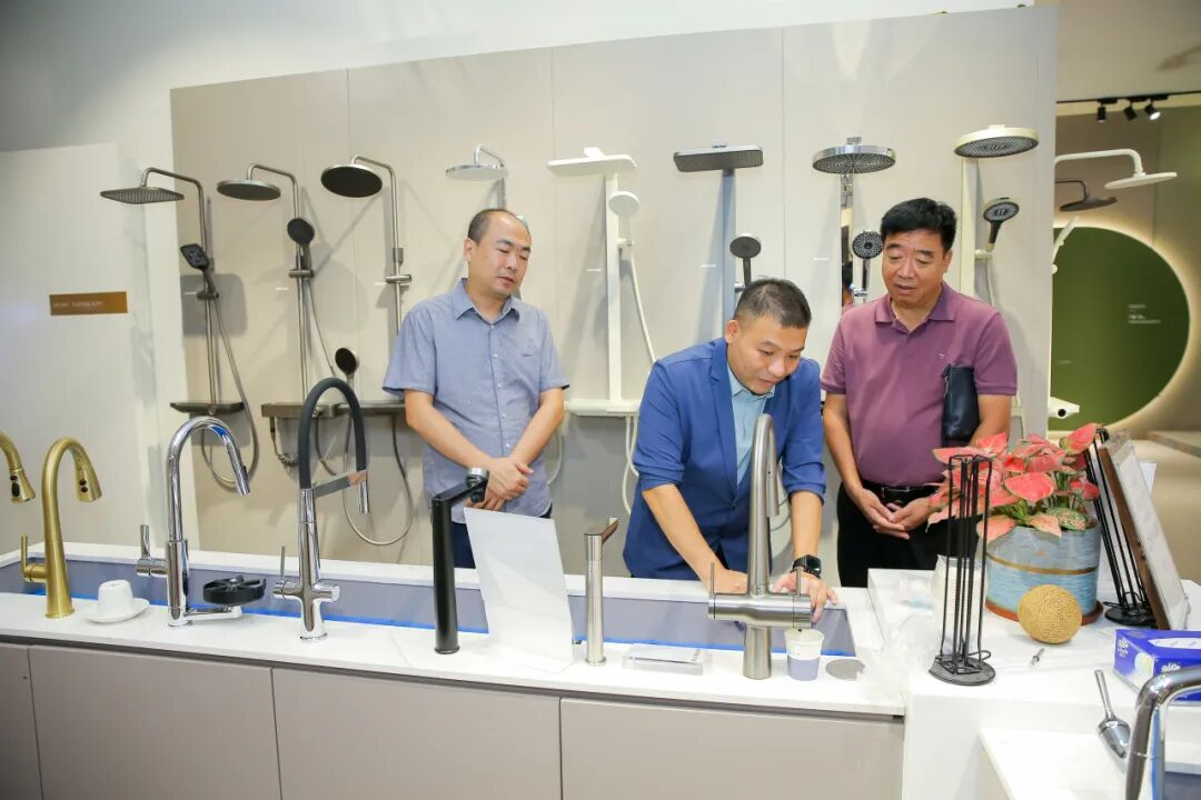 在何总的陪同下,王会长首先参观了华艺卫浴的品牌展厅,全面了解华艺卫浴30多年的企业发展历程、产品矩阵及核心技术。何总介绍,华艺卫浴自成立以来,便秉持对高品质产品的执着追求,深耕技术领域,依托强大的研发实力和创新能力,不断推出引领市场潮流的卫浴新品。王会长对华艺卫浴极具个性化的产品设计给予高度的评价,并赞其“是华夏的艺术之光”。