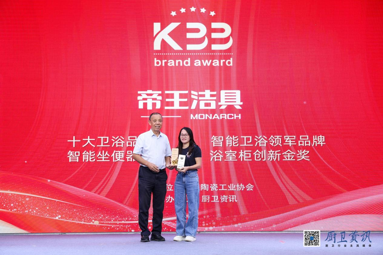 2025年10月16日,被誉为厨卫行业“年度风向标”的第十九届厨卫行业高峰论坛暨KBB榜单发布典礼在广东佛山隆重举行。在本届备受瞩目的行业盛典中,帝王洁具凭借其卓越的综合实力与前瞻性的创新布局,成为全场焦点,一举将“十大卫浴品牌”、 “智能卫浴领军品牌”、“智能坐便器质量金奖”、“浴室柜质量金奖” 四项权威大奖收入囊中。尤为值得一提的是,此次是帝王洁具继去年获评后,成功蝉联“十大卫浴品牌”这一重磅荣誉,从品牌引领到品类攻坚,充分展现了其作为行业标杆的持续领导力与产品硬实力。