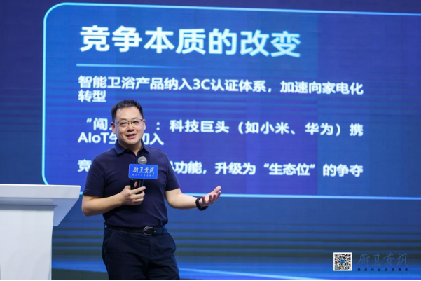 坛并发表主题演讲《从家电到卫卫浴:产业演进逻辑与未来范式重构》,他借鉴家电行业发展规律指出,存量市场必然加速行业整
