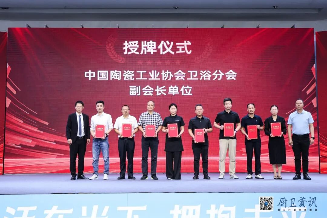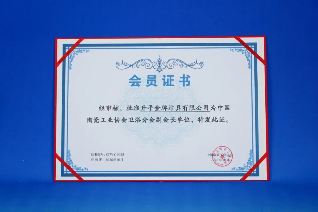会上,金牌卫浴卫浴凭借出色的品牌实力与行业影响力,被授予“中国陶瓷工业协会卫浴分会副会长单位”荣誉,进一步彰显了其在卫浴领域的领先地位。