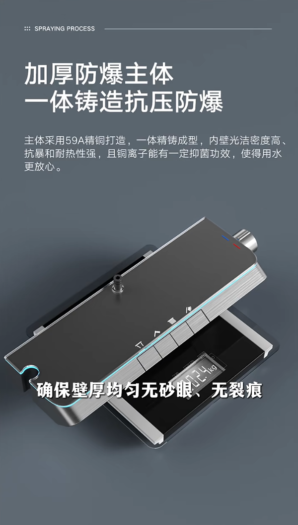 同时配备恒温调节旋钮,旋转即可预设并锁定水温,告别传统花洒 “以身试水” 的尴尬与水温忽冷忽热的困扰,尤其适合有老人、小孩的家庭,保障洗浴安全与舒适。