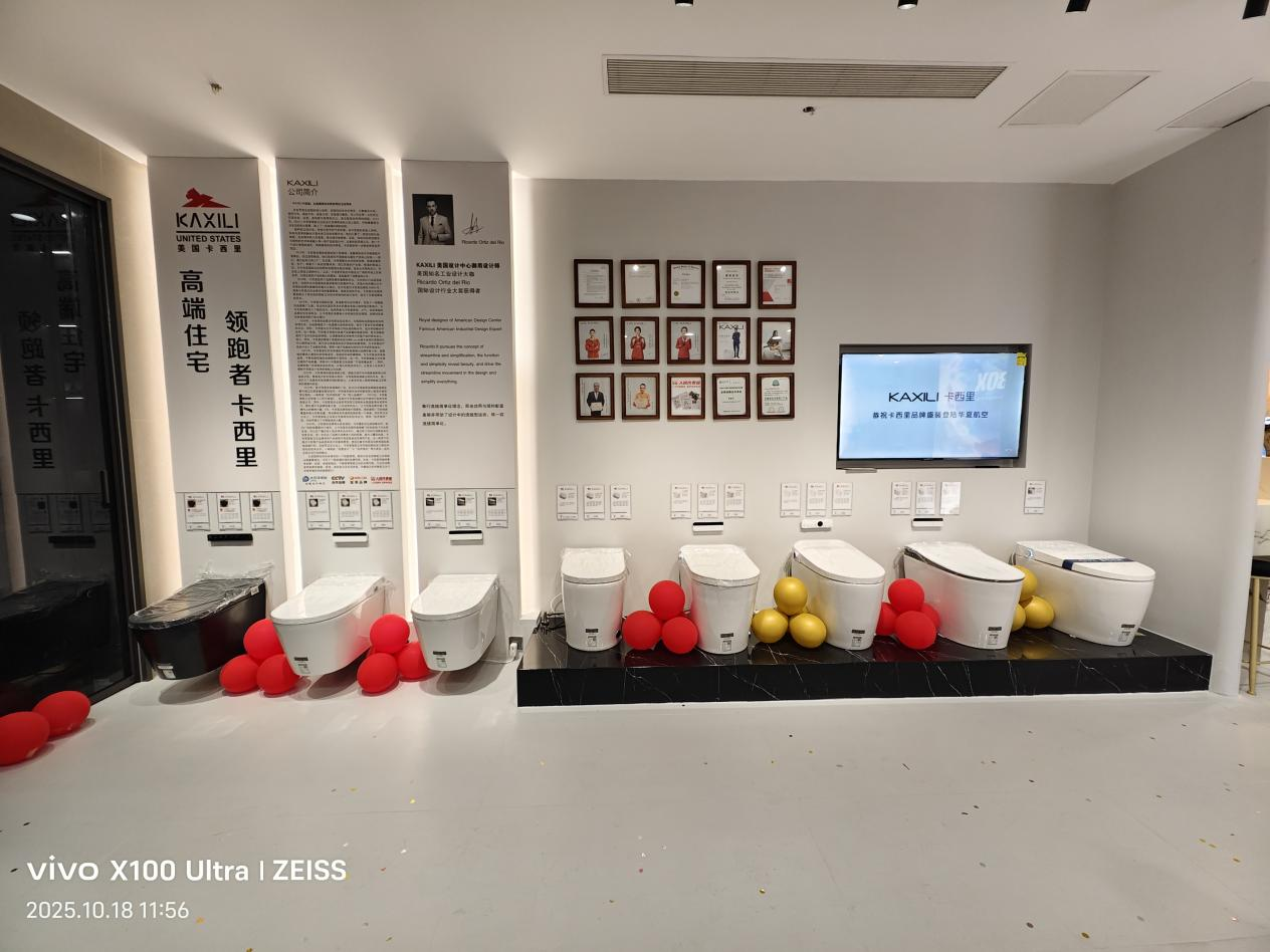 为契合这一需求,美国KAXILI卡西里深度联动 Ricardo 瑞卡多等国际设计大咖,将艺术美学与尖端科技融合,凭借过硬实力斩获中国家居卫浴 “产品质量金奖”,成为 “泰国皇室御用产品”,全系列产品更获智利驻华大使馆推荐,构建起健康保障、智能交互、定制化设计三大核心优势。此次长兴形象店的落地,正是将这份国际高端品质送到消费者身边,为当地高端住宅业主提供近距离体验、选购的便捷渠道,进一步巩固其 “高端智能卫浴首选品牌” 的定位。