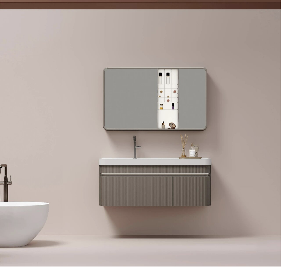 在工艺上,奥蓝德更是突破行业痛点,研制出极具差异化的木皮系列浴室柜。该系列产品,通过“进口木皮+烤漆”工艺,既保留了实木的温润质感与自然纹理,又能解决传统实木在潮湿环境下易变形开裂的问题,还拥有非常丰富的表现力,可以说集颜值与耐用性于一体。