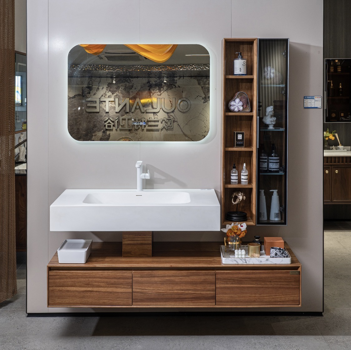 定制浴室柜的痛点,大多集中在“设计效果与实际产品脱节”“定制周期长”“沟通成本高”等。对此,欧兰特通过打通生产与销售前后端,构建了一套成熟的定制服务体系,让贴心和高效贯穿始终。
