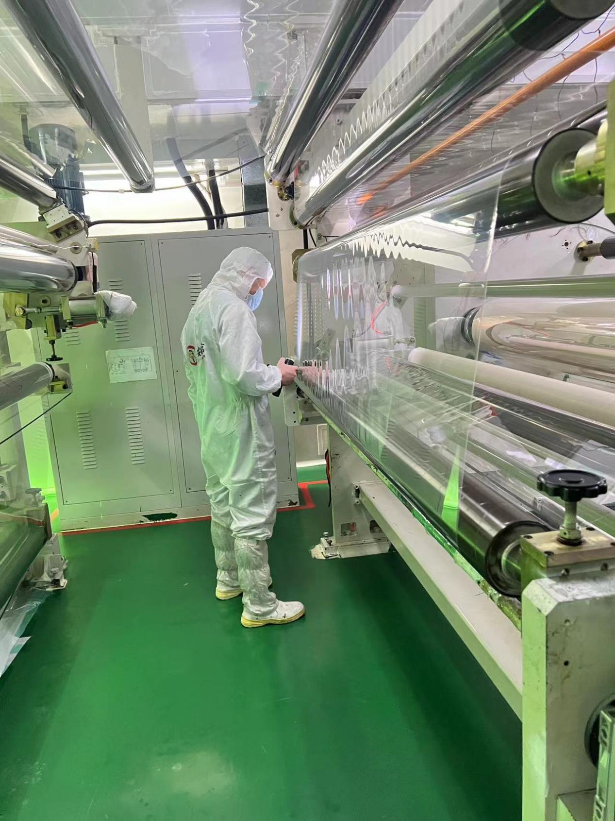 在生产环节,安可膜将匠心精神转化为对工艺的极致追求。10万+㎡的现代化超级工厂内,全自动化生产线高效运转,但速度从未以牺牲质量为代价。核心的涂布、复合、分切等工序均在千级无尘环境下进行,专业技术人员身着防护装备专注操作,严格遵循高精度作业规范。针对不同产品的特性,安可不断优化工艺参数,比如为抗菌膜研发特殊抗菌涂层技术,为降温膜精准调控紫外线拦截工艺,用技术精进实现性能突破。