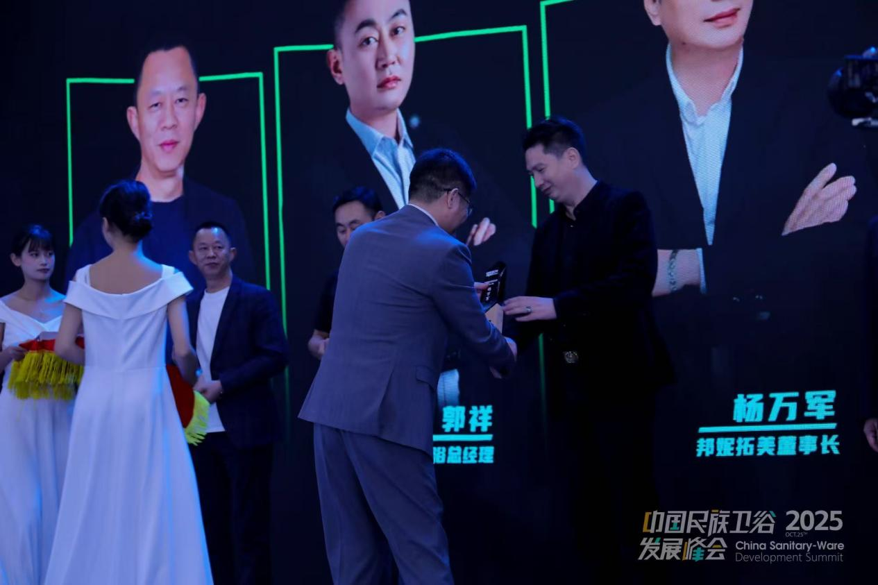 10 月 25 日,备受行业瞩目的 2025 中国民族卫浴发展峰会圆满落幕。作为汇聚全国卫浴产区领军者、权威专家与创新力量的顶级盛会,本次峰会以 “聚力民族品牌,创领卫浴新未来” 为核心议题,深度剖析产业升级路径,精准预判消费趋势变革。深耕卫浴领域十余载、以 “中国美学” 破局同质化竞争的民族品牌标杆 —— 柒登卫浴,在此次峰会上收获双重重磅认可:品牌创始人郭祥先生受邀参与《2025 中国卫浴行业发展白皮书》发布启动仪式,更凭借在产业创新、品牌建设与国际市场开拓中的卓越贡献,斩获 “先锋人物” 荣誉称号,成为兼具 “中国特色” 与 “全球视野” 的行业典范。