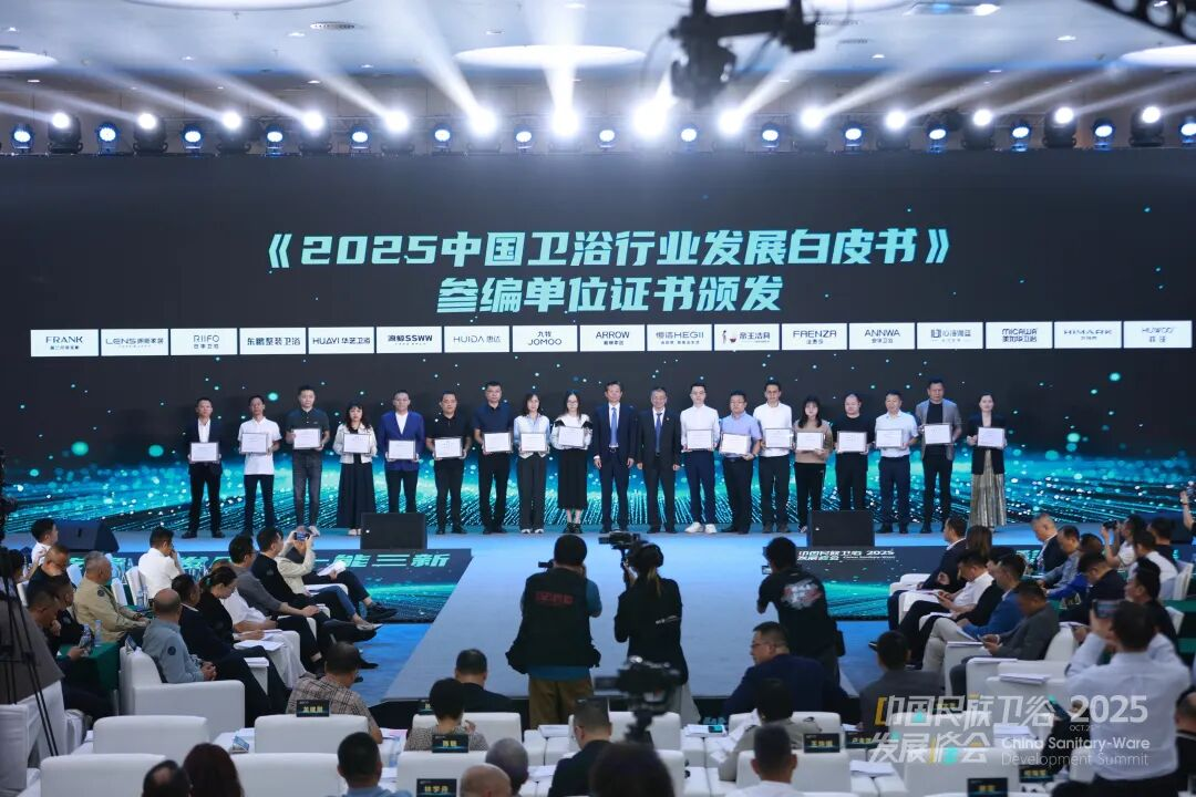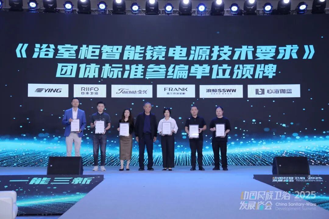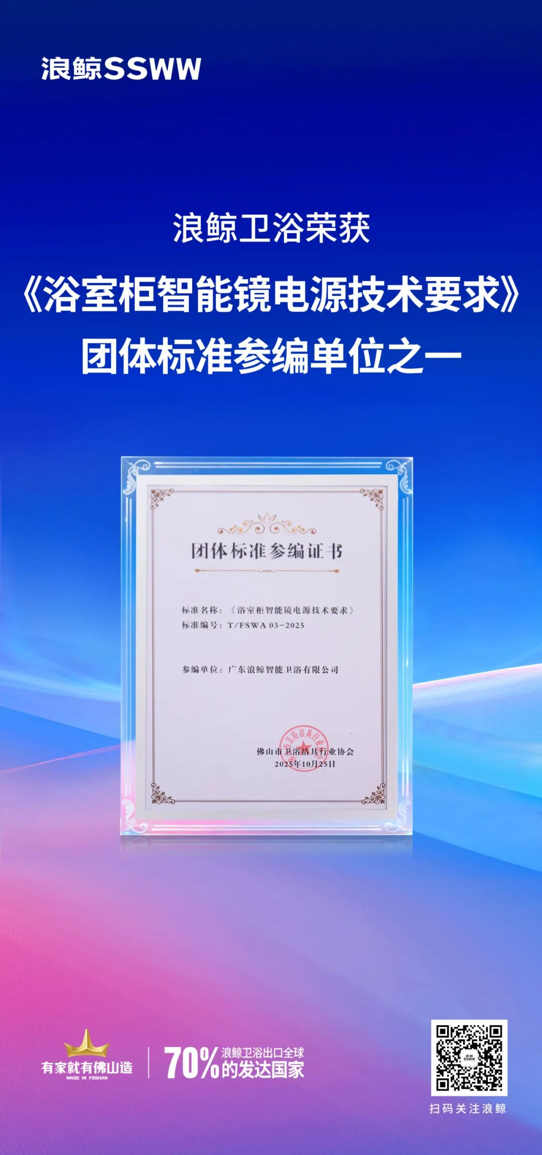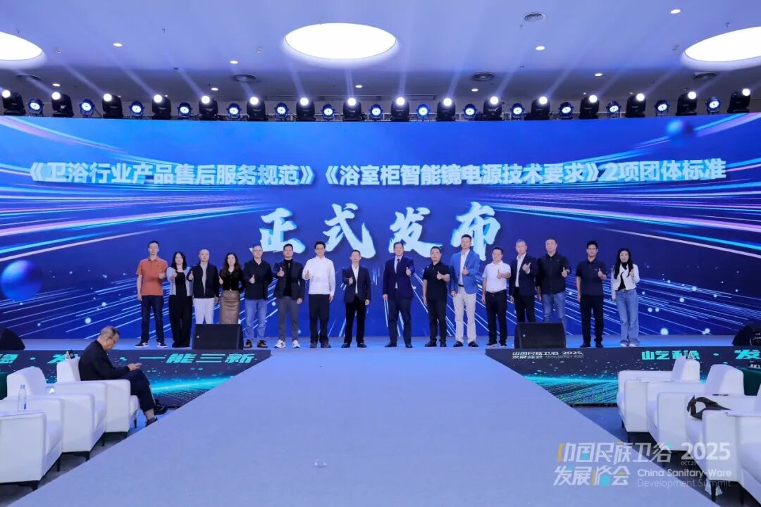 10月25日,2025中国民族卫浴发展峰会在广东佛山盛大召开。会上,浪鲸卫浴凭借卓越的品牌实力荣获“水洗科技标杆品牌”,并以行业专业知识和经验成为《2025中国卫浴行业发展白皮书》及《浴室柜智能镜电源技术要求》团体标准参编单位之一。