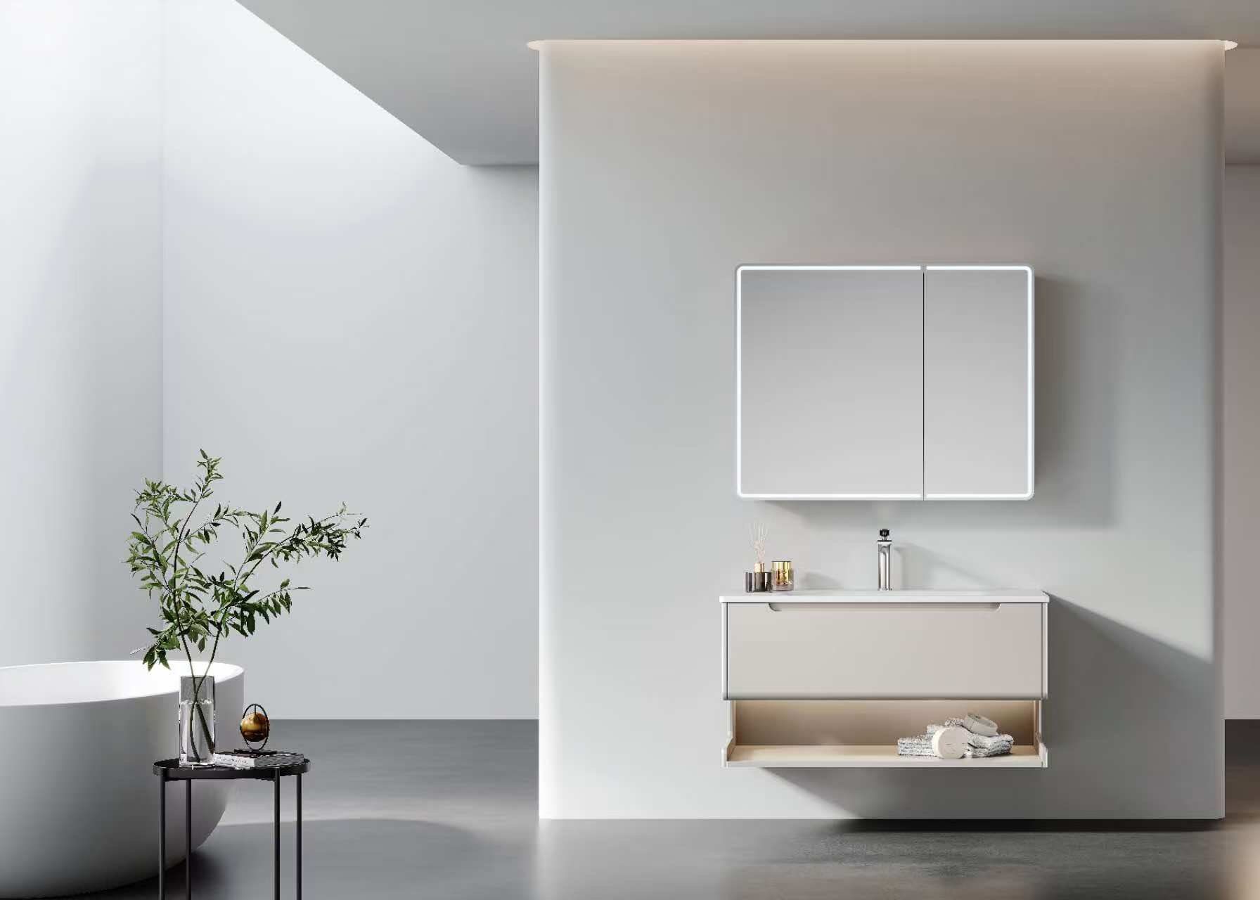 功能设计直击年轻痛点:合理的储物布局能分类收纳护肤品、化妆品等零碎物件,告别台面杂乱;搭载照明、除雾、收纳、蓝牙音响等多功能的智能镜柜,不仅提升使用便捷性,更能营造治愈氛围,让洗漱时光成为每日的 “多巴胺补给”,完美适配年轻人的精致生活节奏。