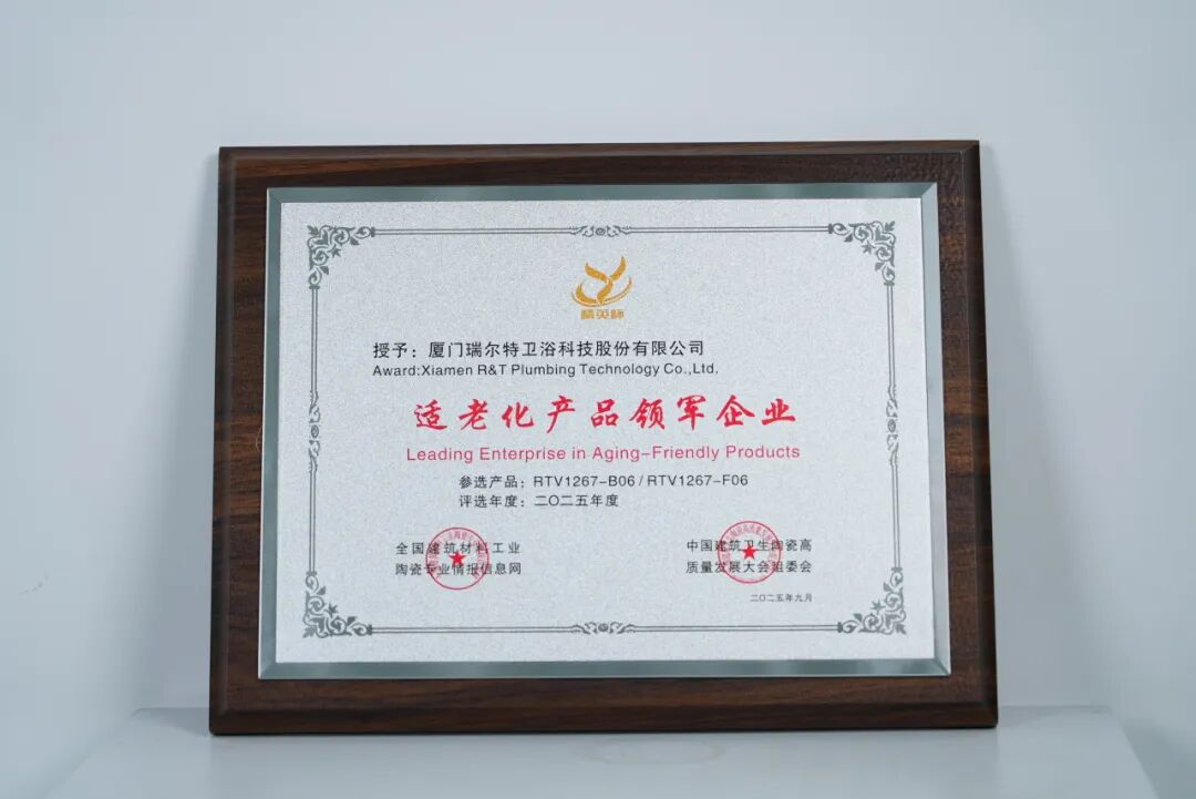 而在2025年10月,经全国建筑材料工业陶瓷专业情报信息网与中国建筑卫生陶瓷高质量发展大会组委会的联合评定,瑞尔特被正式授予 “适老化产品领军企业” 荣誉称号。这份沉甸甸的荣誉,是行业对瑞尔特创新研发与市场引领地位的至高认可。
