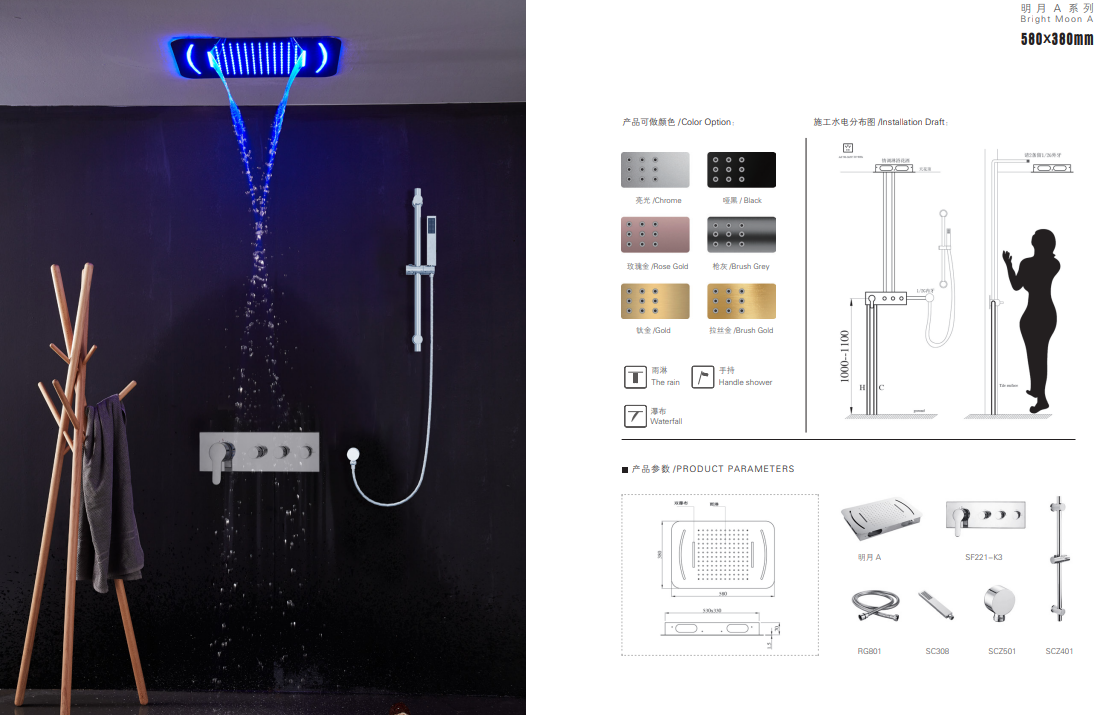 浴旺三星四星级酒店智能暗装嵌入式音乐情调LED淋浴花洒明月系列A套装