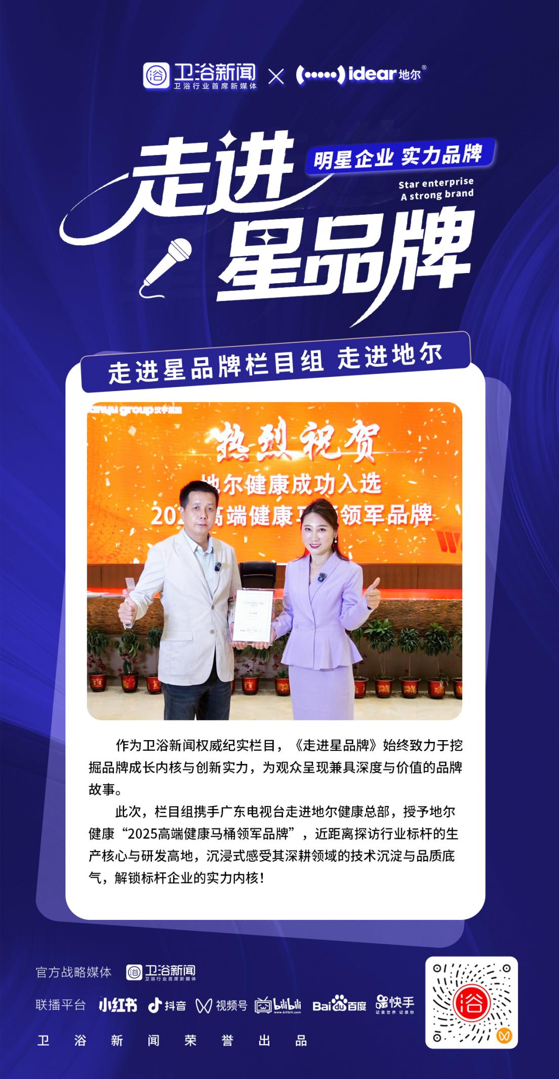 在高端智能马桶领域,地尔健康始终保持领先地位。10月29日,《对话星品牌》栏目组走进地尔健康,并为其颁发“高端健康马桶领军品牌”荣誉证书。这份荣誉是对地尔健康在技术创新、健康价值深耕与高端市场布局上长期沉淀的认可。在健康消费升级、高端家居需求迭代的行业浪潮中,地尔健康以差异化路径突围,成为高端健康马桶赛道的标杆。