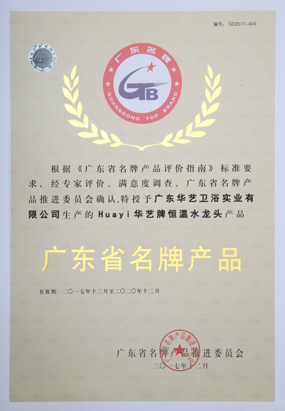 5月10日为“中国品牌日”,广东质量品牌提升高峰论坛暨省名牌颁奖仪式在广州举行,并为“2017年广东省名牌产品”获奖品牌授牌。华艺卫浴以强大的研发技术和品牌优势再获“2017年广东省名牌产品”称号,同时也是连续15年获得“广东省名牌产品”的荣誉。