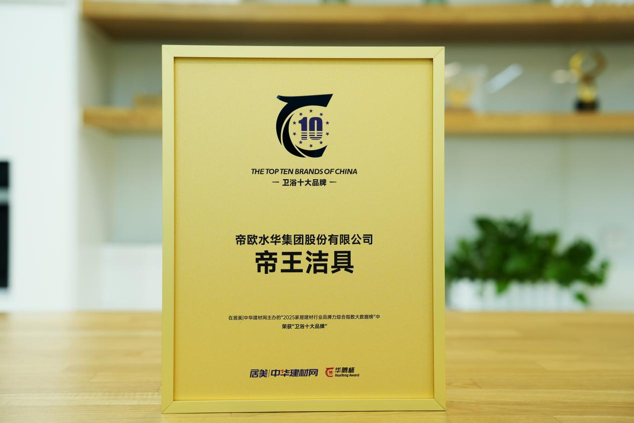 此前,在“华腾杯”2025家居建材行业品牌力综合指数大数据评选中,帝王洁具同样成功入选“卫浴十大品牌”,再获行业权威认可。