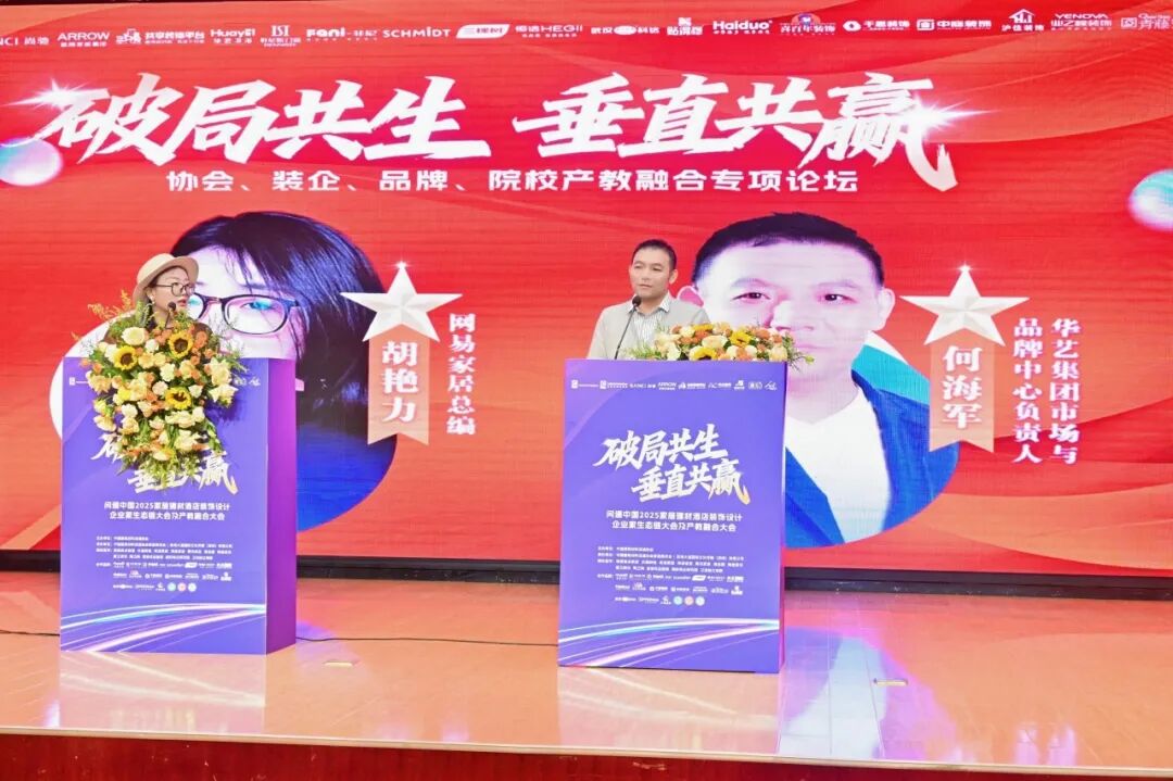 会议现场,由韩军主席与网易总编辑胡艳力联合主持的“协会、装企、品牌、院校旧改专项研讨会”。华艺卫浴作为品牌代表上台围绕“旧改用材、绿色施工、交付标准”等三大议题展开分享。