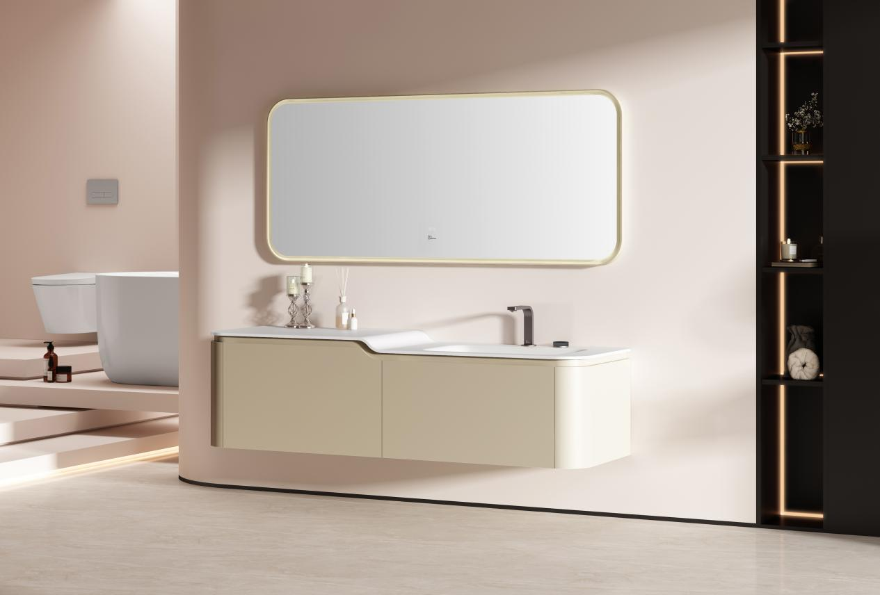 今年帝王洁具推出的亚克力工艺 4.0 公爵板,以健康环保、强韧易洁的全能特性升级个性化定制能力,衍生出奇境定制浴室柜等明星产品。