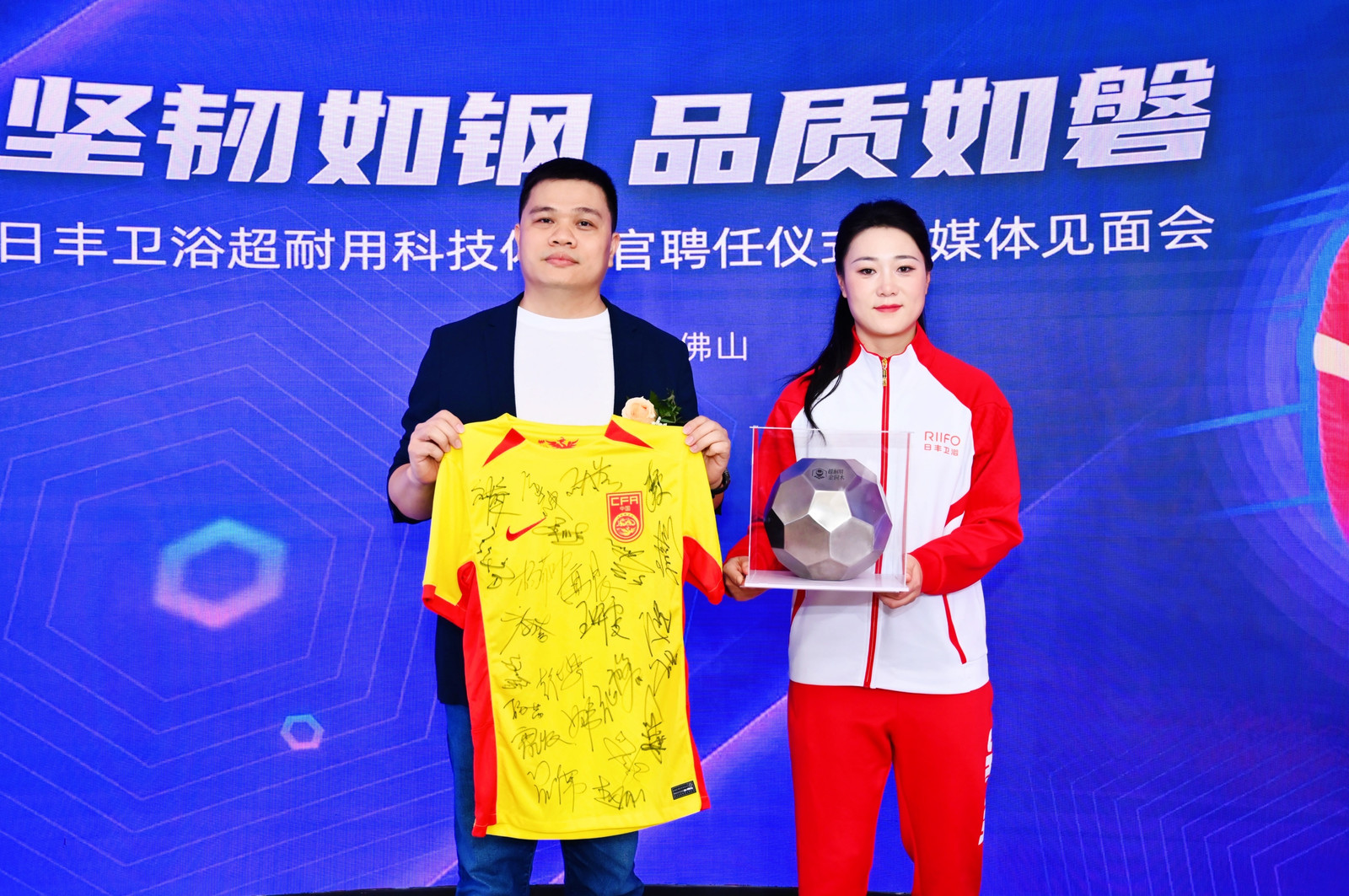 2025年11月,日丰卫浴举办的“坚韧如钢·品质如磐——超耐用科技体验官聘任仪式暨媒体见面会”上,正式邀请亚洲杯女足冠军成员、女足球员姚凌薇出任“超耐用科技体验官”。这一合作,将足球运动中的坚韧、拼搏精神与卫浴产品的耐用、可靠特性深度融合,为科技注入人文温度。