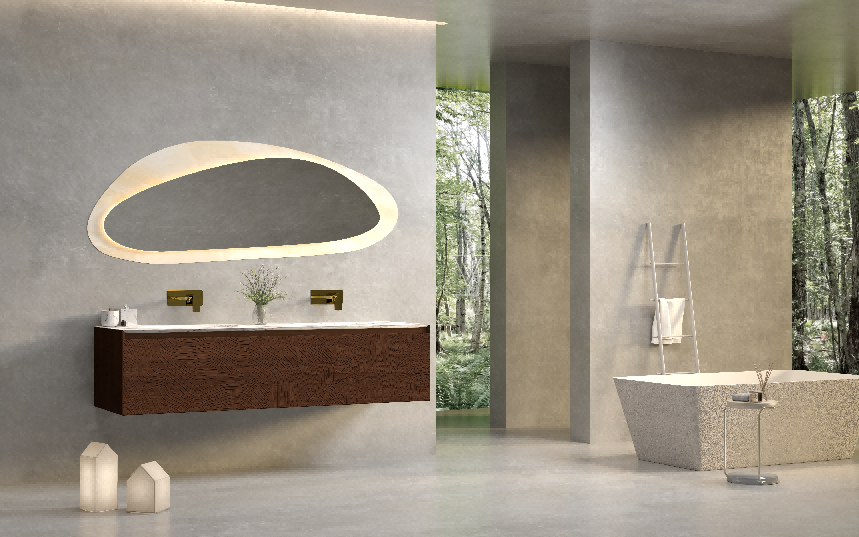 在原材料选择上,顾派尼坚持 “全球甄选,优中选优” 的原则,只为给客户呈现最优质的产品基底。木材方面,选用北美 FAS 级黑胡桃木 —— 作为实木中的 “珍品”,其纹理细腻美观、质地坚硬稳定,自带高端质感,是高端定制浴室柜的理想材质;台面材质则涵盖意大利进口岩板、天然大理石及巴西进口奢石,岩板的耐高温、防刮擦特性,大理石的天然纹理与奢华质感,奢石的稀有性与独特美学,满足不同客户对台面材质的个性化需求;五金配件则采用德国海蒂诗品牌,作为全球知名的五金供应商,其产品经过严苛测试,开合顺滑、耐用性强,为浴室柜的长久使用提供保障。
