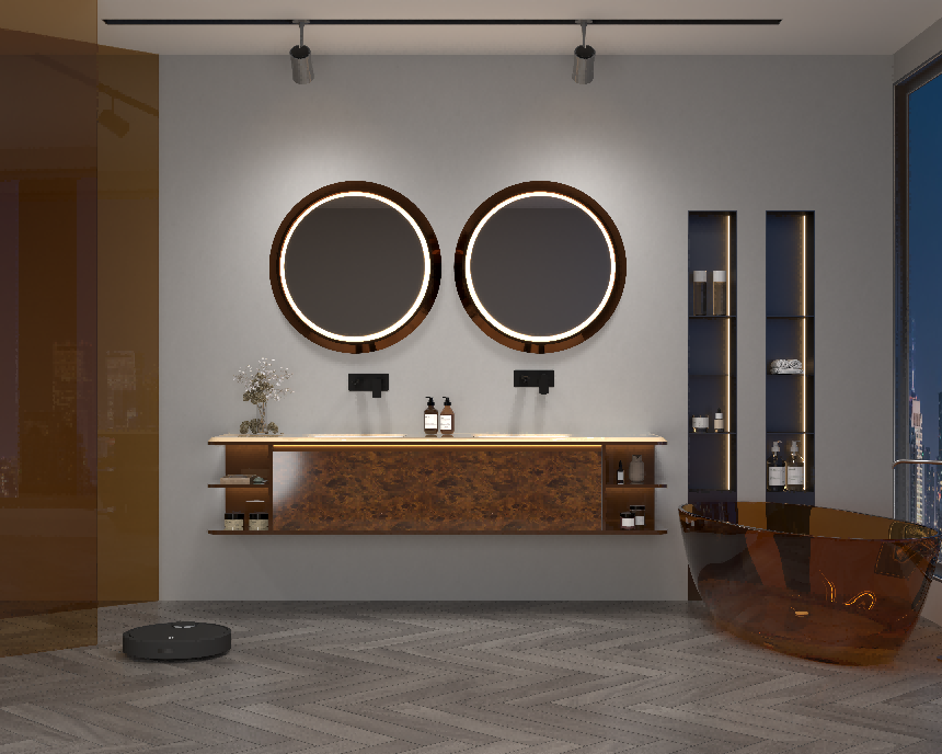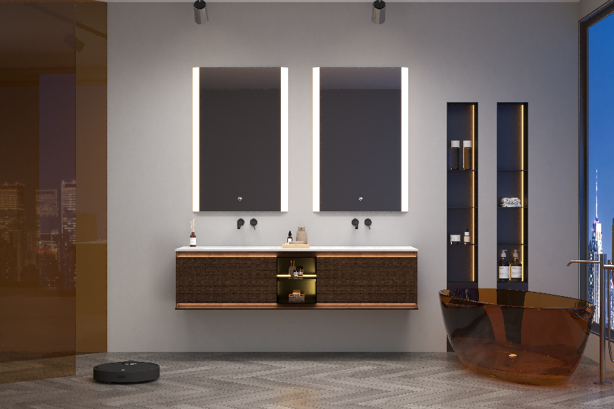 工艺层面,顾派尼将 “科技” 与 “手工” 完美融合,既保证产品的精准度,又赋予产品艺术感。引入先进的数控加工设备,实现对木材的毫米级精准切割,确保每一个零部件的尺寸误差控制在极小范围,为后续组装的稳固性奠定基础;在漆面处理上,采用手工涂装工艺,经过多道打磨、上漆、烘干工序,最终呈现出细腻光滑、色泽均匀的艺术级漆面效果,触感与视觉体验俱佳。同时,顾派尼还注重传统工艺的传承与创新,将榫卯结构融入现代浴室柜设计,既保留了传统工艺的古朴美感,又增强了柜体的结构稳定性;采用隐形连接件技术,让柜体外观更简洁统一,避免了传统连接件外露影响美观的问题。