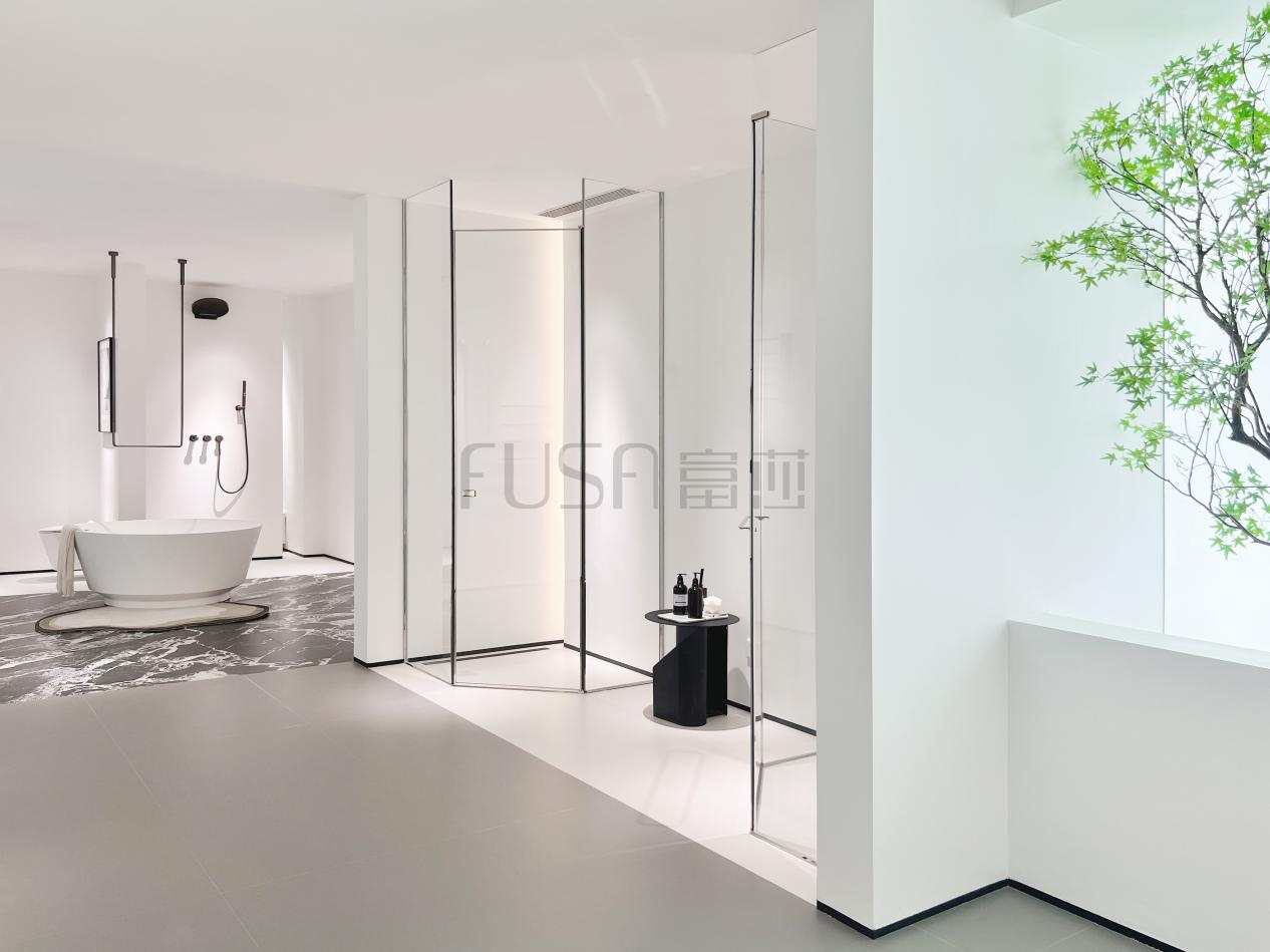 富莎淋浴房创新融入极简主义美学,采用独特的纯平设计。摒弃繁杂线条与装饰,以简洁流畅的边框线条,搭配通透的超白玻璃,营造开阔、明亮的视觉效果。