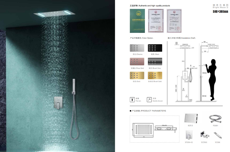 广东正品好物 浴旺品牌 明月D 智能情调淋浴工程酒店二功能LED淋浴套装