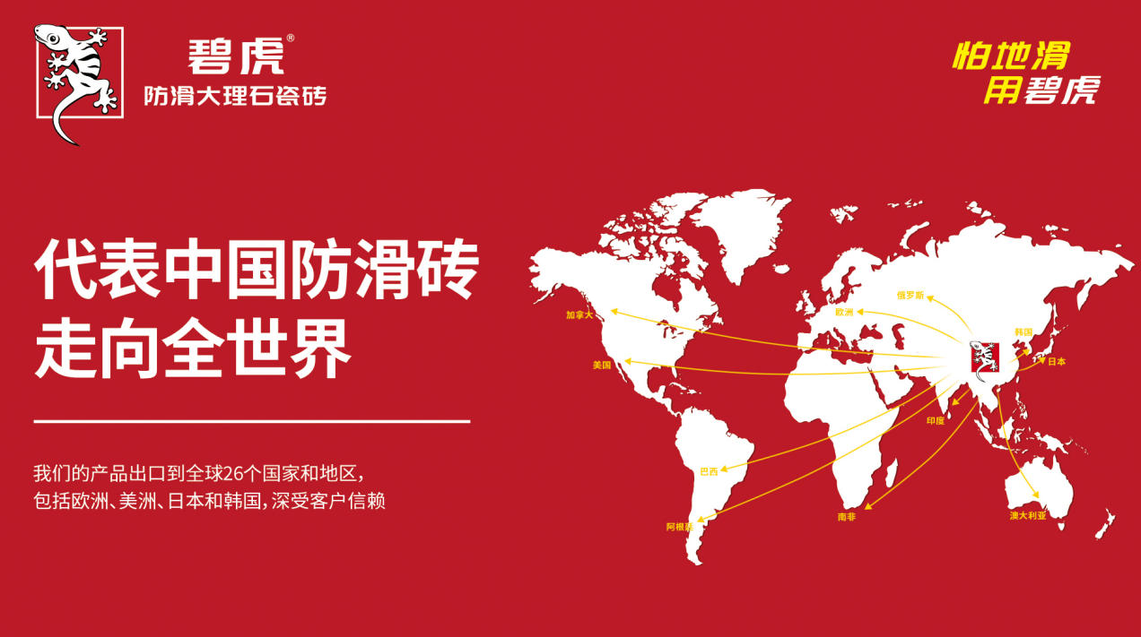 所谓品牌底气,不仅仅是手握五项国家防滑专利,更是让每一片瓷砖都经得起市场检验,让“碧虎=防滑”“防滑=碧虎”成为深入人心的消费共识!让碧虎品牌的影响力,渗透建材行业各个角落,成为千家万户的行走安全保护罩!