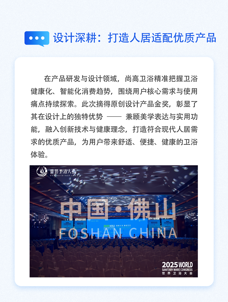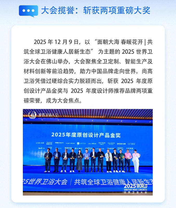 实力加冕!尚高卫浴斩获 2025 世界卫浴大会两项重磅大奖