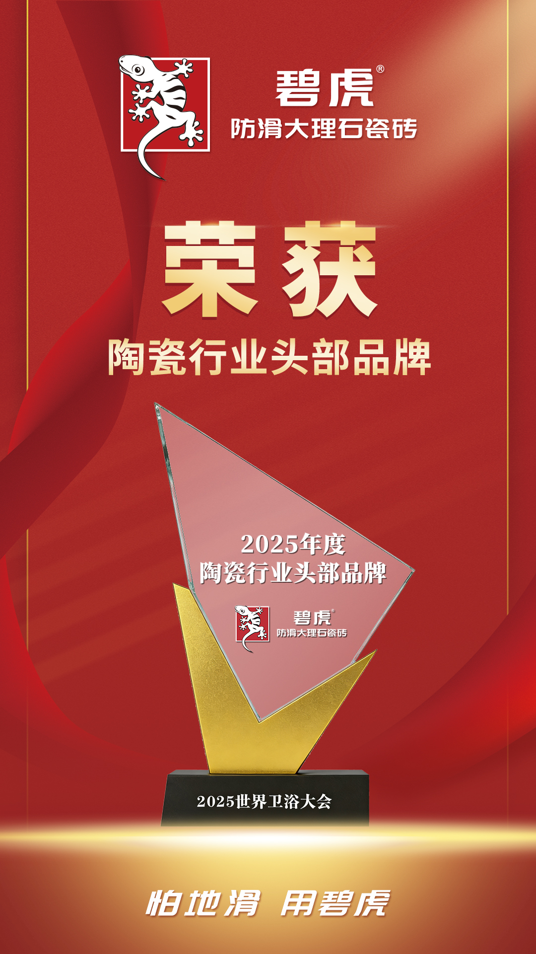 本次世界陶瓷卫浴组委会授予碧虎《陶瓷行业头部品牌》荣誉称号,更实在多方面认可碧虎品牌的付出与成绩。作为防滑瓷砖领域的大品牌,碧虎值得全国消费者的信赖和认可,担得起行业头部品牌的殊荣与职责。