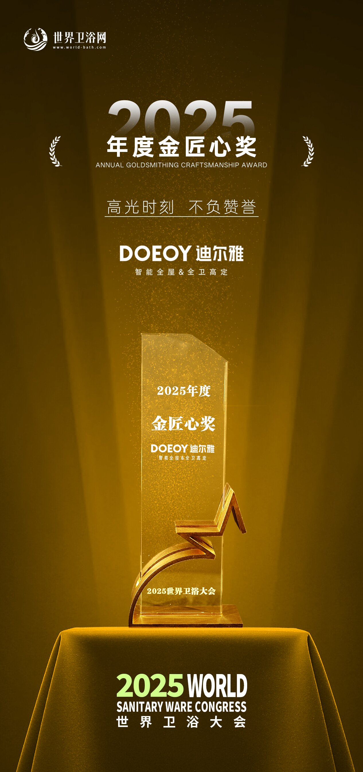 12 月 9 日,“面朝大海・春暖花开,共筑全球卫浴健康人居新生态”2025 世界卫浴大会在佛山樵山文化中心圆满落幕。作为深耕整木定制卫浴领域近二十载的实力品牌,迪尔雅卫浴凭借 “整木浴室定制” 核心优势、传统工艺传承与极致匠心品质,一举斩获 “2025 年度设计师推荐品牌”“2025 年度金匠心奖” 两项重磅荣誉,以双重权威认可印证品牌核心价值,彰显其在实木定制卫浴赛道的标杆地位。