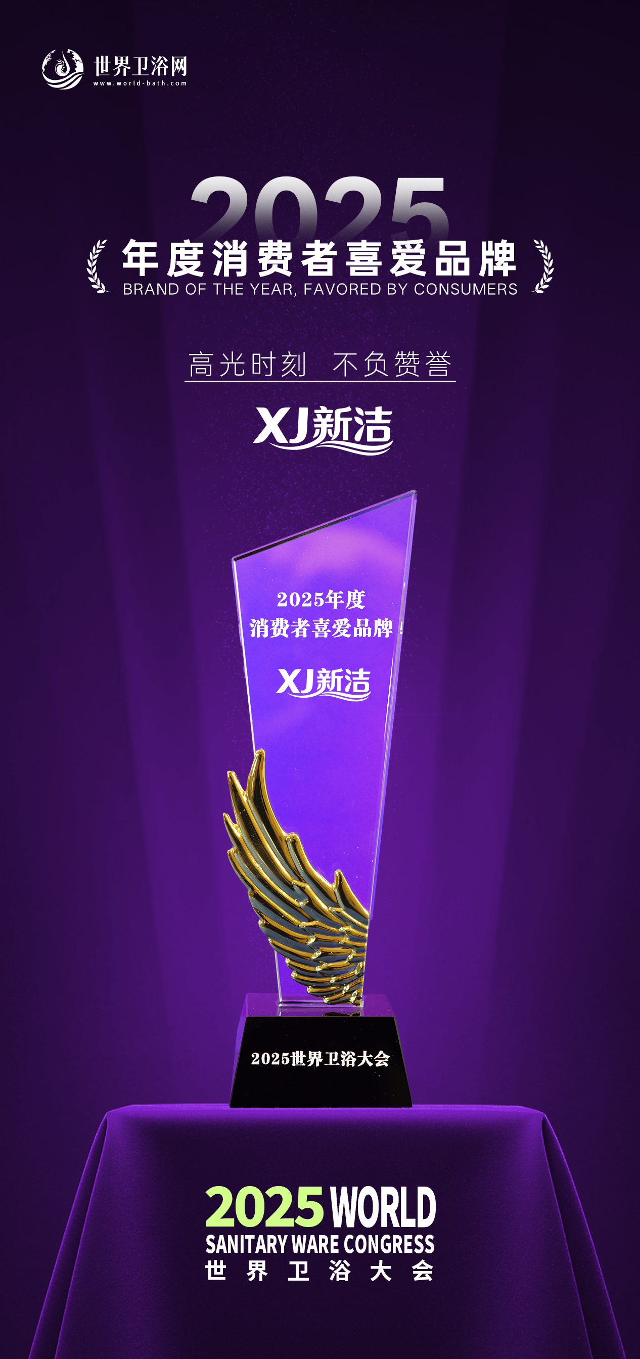 此次 “2025 年度消费者喜爱品牌” 的荣誉加冕,是 2025 世界卫浴大会对新洁卫浴垂直技术深耕、绿色生产实践与高效定制服务的高度肯定,更是广大消费者对品牌 “环保、品质、高效” 发展理念的深度认可。这一荣誉,不仅是新洁卫浴品牌发展的重要里程碑,更印证了免漆浴室柜赛道 “技术升级 + 环保升级 + 定制升级” 的行业趋势。