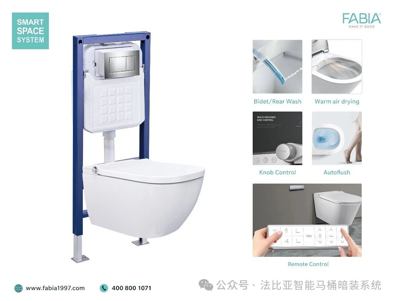 作为始终聚焦智能卫浴创新的领军品牌,法比亚的获奖绝非偶然。深知传统明装马桶管线外露、清洁不便、安装繁琐的痛点,法比亚组建专项研发团队,历经多年潜心攻坚,成功突破“隐藏式水路集成系统”与“超薄机身智能控制模块” 两大核心技术壁垒。其自主研发的暗装智能马桶采用壁挂式设计,将水箱、水管等核心部件巧妙嵌入墙体,超薄机身搭配一体化无缝陶瓷釉面,不仅让浴室空间实现极简美学升级,更从根源上解决了清洁死角难题。