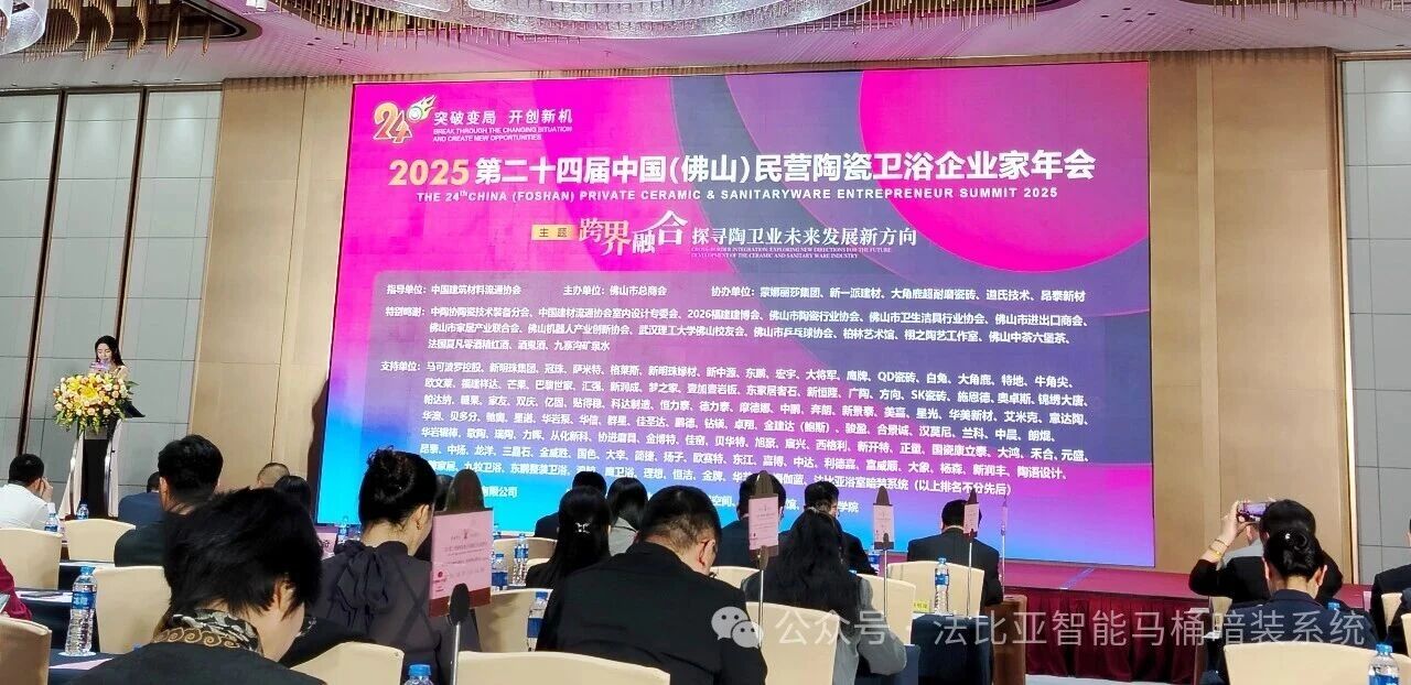 深耕行业 24 载的民营陶卫企业家盛典于12 月 18 日圆满落幕!中国(佛山)民营陶瓷卫浴企业家年会在佛山皇冠假日酒店万豪殿顺利举办。本届年会以 “跨界融合,探寻陶卫业未来发展新方向” 为核心主题,怀揣 “突破变局,开创新机” 的奋进初心,集结政企代表、行业大咖与产业链伙伴,通过高层对话、荣誉表彰、资源对接的多元形式,为行业发展注入强劲动力。