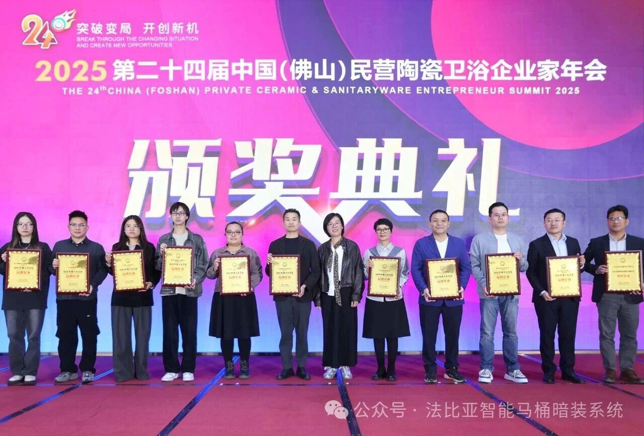 在这场凝聚行业共识、共话高质量发展的盛会中,重磅荣誉的揭晓成为全场焦点时刻。凭借在智能卫浴领域的深耕细作与技术突围,法比亚在颁奖典礼上荣耀加冕,成功斩获“2025 年暗装智能马桶技术标杆企业” 称号,用硬核实力赢得行业高度认可!