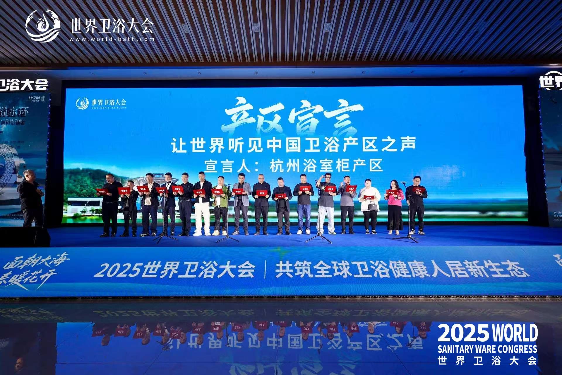 此次世界卫浴大会,无疑是顾派尼及杭州浴室柜产业走向全球的重要契机。会上,郑斌等企业家上台宣读《杭州浴室柜宣言》,成功向全球行业同仁展现了杭州浴室柜的产区优势与发展决心,同时得到与会嘉宾高度认可。