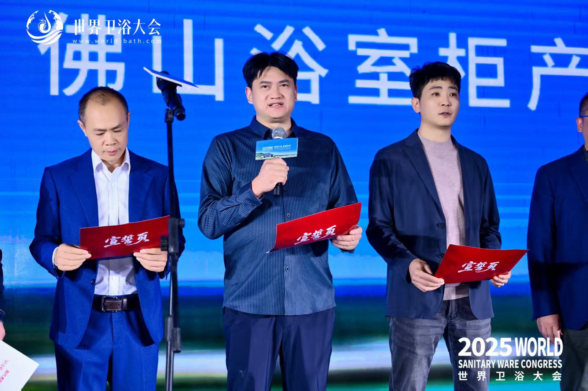 此次世界卫浴大会落地佛山,更为产区IP传播提供了绝佳契机。杨志国与其他产区代表共同宣读《佛山浴室柜宣言》,从产区积淀、品质坚守、创新实践等维度,向全球展现了“好浴柜,佛山造”的底气与自信,让世界清晰感知佛山浴室柜的产业实力,获得了与会嘉宾的高度认同与广泛关注。