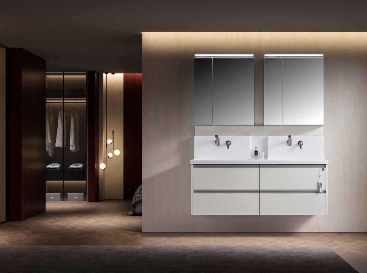 同时,沐思欧深耕年轻时尚设计赛道,组建专业年轻设计团队,紧跟全球家居潮流趋势,将极简主义、莫兰迪色系等流行元素融入产品设计,打造出线条流畅、色彩清新、造型多样的浴室柜产品。从单盆到双盆,从悬挂式到落地式,从基础收纳到智能镜柜,全方位覆盖年轻家庭的多元化卫浴需求,实现时尚颜值与实用功能的完美融合,为消费者提供兼具品质感与美学感的卫浴空间解决方案。