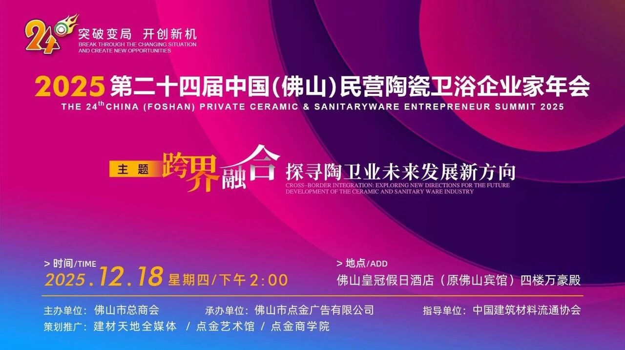中国(佛山)民营陶瓷卫浴企业家年会,由佛山总商会主办,建材天地全媒体平台策划。自开办以来引领着行业持续健康成长。本次会议,深入探讨了建陶卫浴行业发展新趋势,聚焦企业如何创新破局,走向国际化的相关话题,此次年会,不仅为陶卫行业内的企业提供了一个交流与合作的平台,更为行业的未来发展指明了方向。