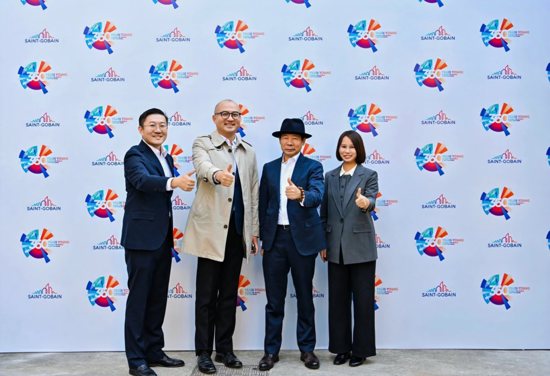 理想卫浴董事长危五祥(右2)与圣戈班集团亚太区首席采购总监(Chief Procurement Officer)(左2)在圣戈班360周年庆活动现场留影