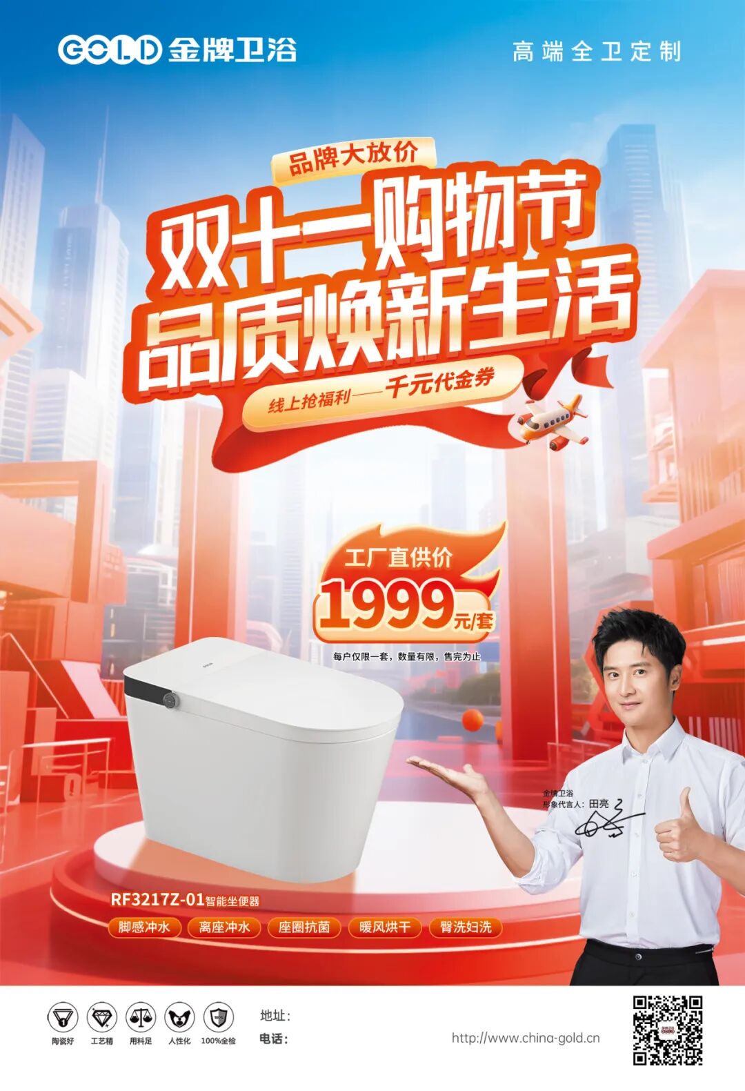 金牌卫浴“双十一购物节”圆满落幕,以“品质焕新生活”为主题,联动全国终端门店及线上平台,掀起智能健康卫浴消费热潮。活动期间,凭借明星产品工厂直供、政企双补优惠及全卫定制服务,此次大促不仅彰显了消费者对金牌高端全卫定制理念的高度认可,更印证了品牌在产品力、服务力与渠道力上的全面领先。金牌卫浴将持续以创新科技与匠心品质,赋能中国家庭卫浴空间焕新升级。