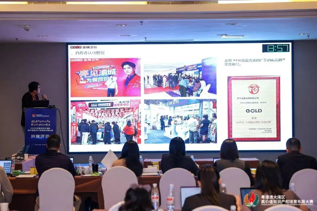 晋级项目按初创与成长两大组别、“专利”与“商标”两大类别展开角逐。金牌卫浴参赛团队通过路演答辩形式,深度阐述“金牌卫浴GOLD”项目的商标品牌培育与保护工作。最终在2025 年粤港澳大湾区高价值知识产权培育布局大赛中,金牌卫浴荣获商标类成长型“三百强项目”奖项。