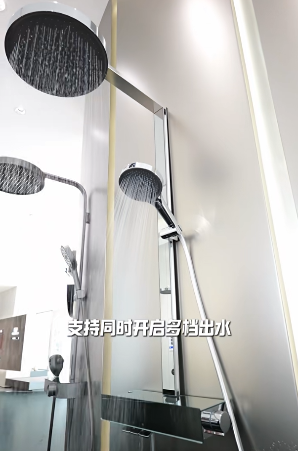 它配备的极简无极升降杆,全家人都能找到最舒适的高度和角度。还有专门设置的儿童花洒座,方便小孩自己洗澡,这细节真的太圈粉了。