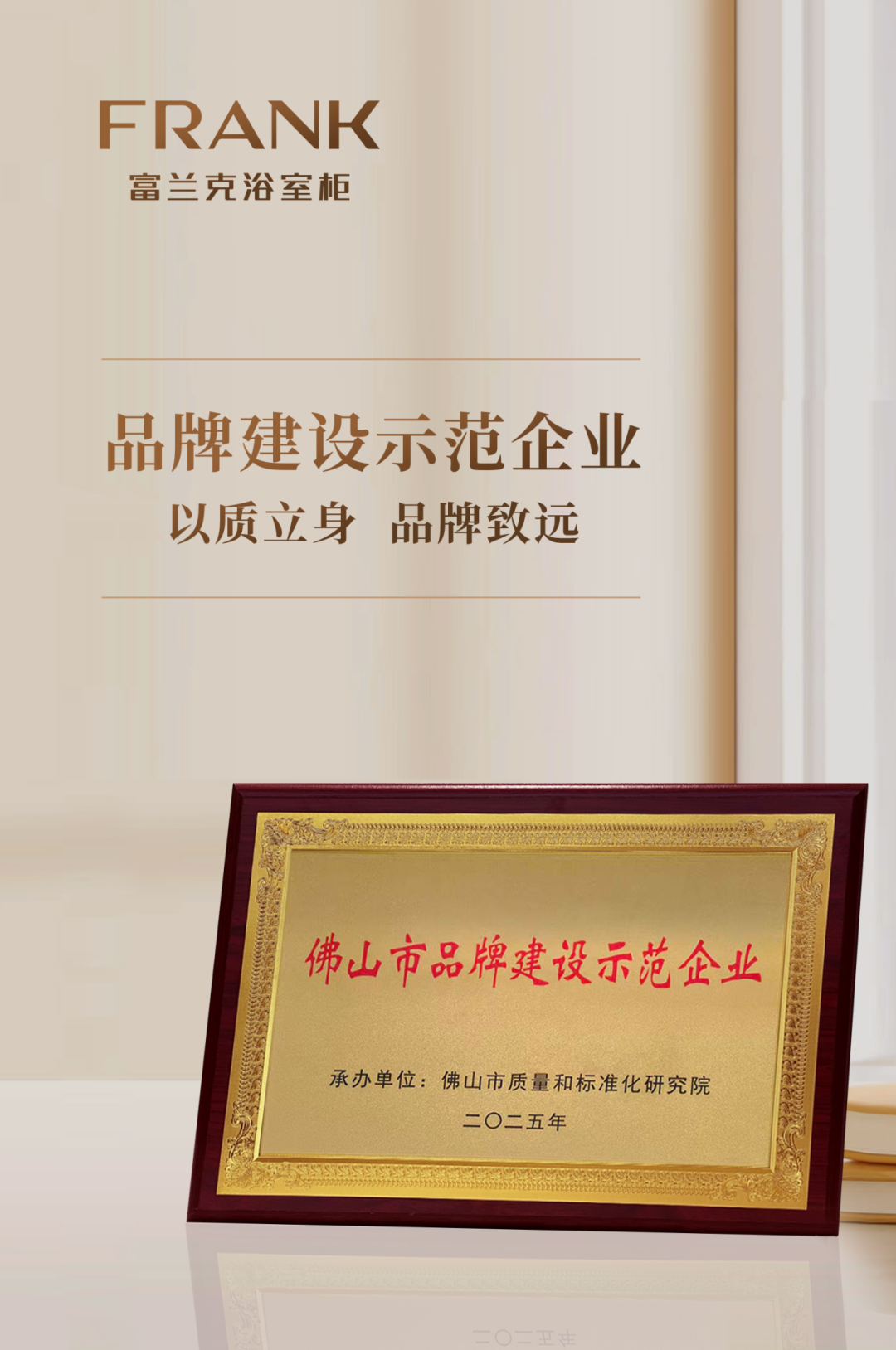 权威认可!富兰克浴室柜获评2025年“佛山市品牌建设示范企业”