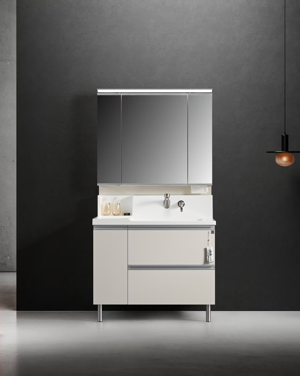 在品质把控上,沐思欧建立起层层严苛的把关体系,其五金配件全部采购自上市公司,从源头确保产品稳定耐用,有效规避日常使用中的故障隐患。尤其2025年,更是被沐思欧定义为“质量元年”,产品板材全面升级至环保等级最高的ENF板材,最大程度减少甲醛释放,为年轻家庭的健康保驾护航;近期推出的新品,更将台盆油漆升级为进口帝斯曼产品,不仅让产品质感更细腻,更显著提升了抗污耐磨性能,完美适配年轻人快节奏、重实用的生活需求。