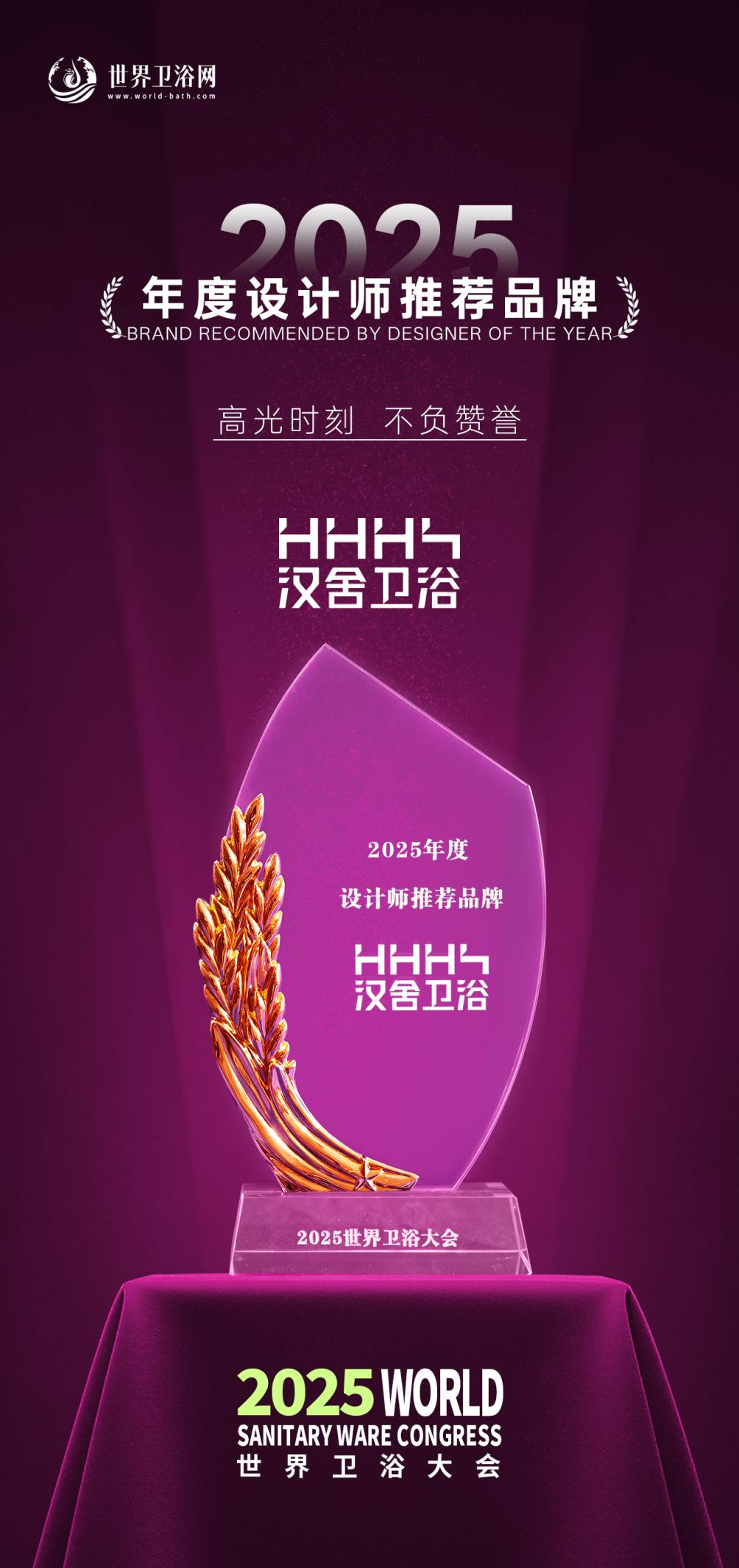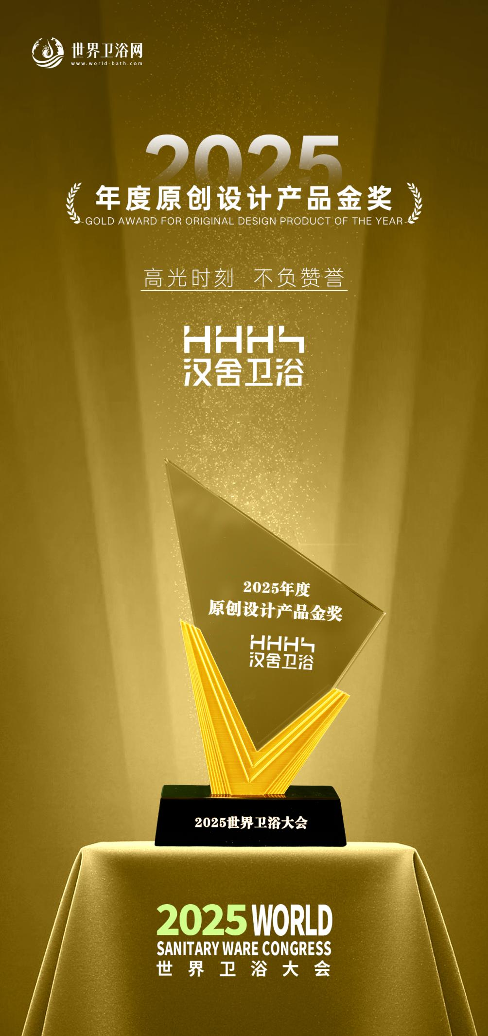 在2025年世界卫浴大会上,汉舍卫浴一举斩获“2025年度原创设计产品金奖”和“2025年度设计师推荐品牌”两项重磅荣誉,产品原创设计美学与在设计师渠道的影响力,得到权威认可。